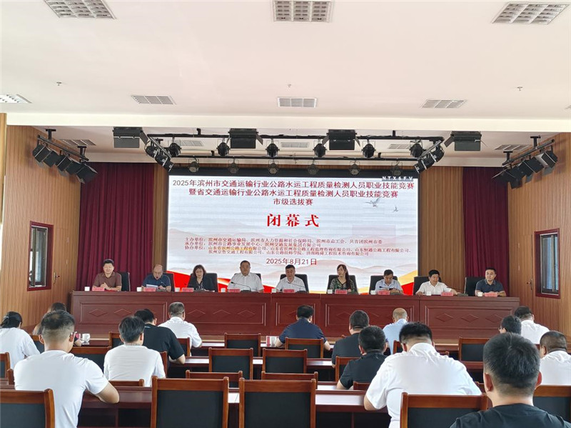 8月21日上午,2025年濱州市交通運(yùn)輸行業(yè)公路水運(yùn)工程質(zhì)量檢測(cè)人員職業(yè)技能競(jìng)賽暨省交通運(yùn)輸行業(yè)公路水運(yùn)工程質(zhì)量檢測(cè)人員職業(yè)技能競(jìng)賽市級(jí)選拔賽閉幕式在公司七樓會(huì)議室舉辦。市人力資源和社會(huì)保障局黨組副書(shū)記、市公共就業(yè)和人才服務(wù)中心主任顏波,共青團(tuán)濱州市委副書(shū)記丁寶冬,市交通運(yùn)輸局黨組成員、副局長(zhǎng)曹斌,市交通運(yùn)輸局黨組成員、四級(jí)調(diào)研員鐘軍,公司黨委副書(shū)記、總經(jīng)理、董事劉漢興及市交通運(yùn)輸局、市總工會(huì)有關(guān)部門(mén)及公司權(quán)屬工程公司、監(jiān)理公司有關(guān)負(fù)責(zé)同志參加活動(dòng)。