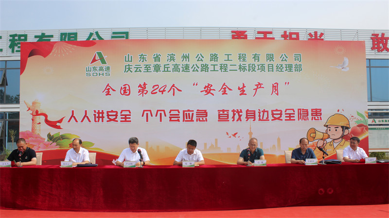 5月30日,第24個(gè)全國(guó)“安全生產(chǎn)月”來臨之際,工程公司慶章高速二標(biāo)段項(xiàng)目部舉行2025年“安全生產(chǎn)月”活動(dòng)啟動(dòng)儀式,旨在強(qiáng)化員工安全生產(chǎn)意識(shí),提升全員應(yīng)急處置能力,確保工程施工安全有序進(jìn)行。濱州交發(fā)黨委委員、副總經(jīng)理鄒鋒,安全管理部有關(guān)人員參加活動(dòng)。